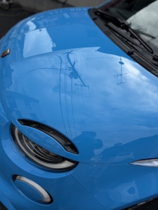 一見すると綺麗な状態でしたが、近くで確認すると写真では写りにくい細かな洗車傷が見受けられましたので、研磨にてしっかりと除去しております。